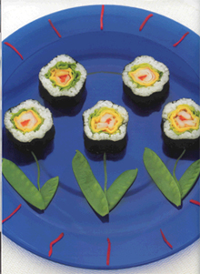 Готовый продукт красиво раскладываем на красивой тарелке, повторяем процедуру до конца кастрюли с рисом – или до конца водорослей, и садимся обедать. Макаем изделие в соевый соус – и в рот! Можно раздобыть палочки-хаси, но японские эксперты рекомендуют сделанные руками продукты кушать тоже руками, чтобы таким образом выразить уважение к повару и почувствовать тепло его души, вложенное в блюдо.